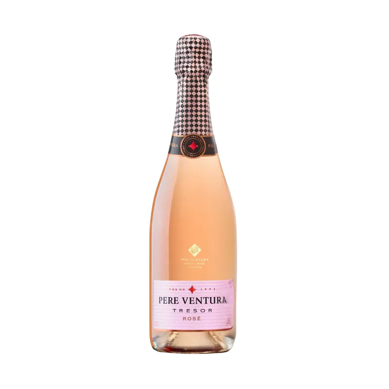 Pere Ventura Tresor Rosé es un cava rosado de alta gama, elaborado con las variedades Pinot Noir y Trepat, que le confieren un color brillante y una frescura excepcional. Este cava es ideal para ocasiones especiales o celebraciones-