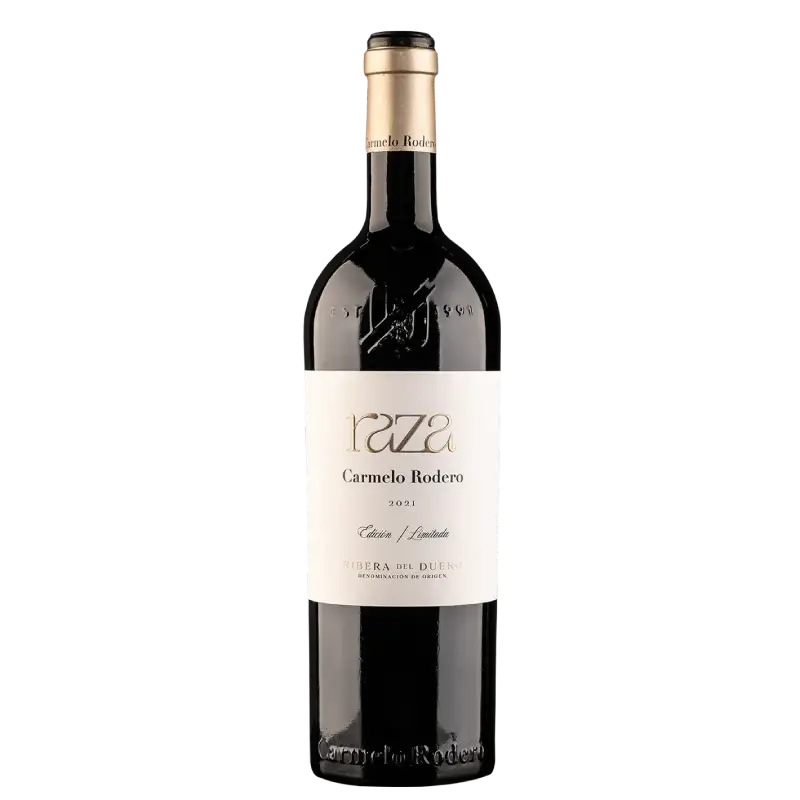Carmelo Rodero Raza 2021 es un vino tinto de la D.O. Ribera del Duero, elaborado por Bodegas Rodero como un homenaje a su tierra natal, Pedrosa de Duero. Este «vino de pueblo» se produce exclusivamente con uvas de cinco parajes emblemáticos: Quintana, Boada, Valcabado, Guzmán y Pedrosa. Con una mezcla de 90% Tempranillo y 10% Cabernet Sauvignon, habla de herencia, identidad, y de una forma de entender el vino como una extensión de quienes somos.