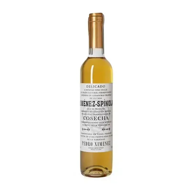 El Ximénez Spínola Delicado se elabora exclusivamente con uvas Pedro Ximénez, una variedad que se cultiva en la región de Jerez. Durante la vendimia tardía, las uvas se cosechan manualmente y se someten al proceso tradicional de soleo, en el que las uvas se secan al sol durante varias semanas, lo que concentra los azúcares y los sabores, otorgando al vino una gran dulzura natural. Una vez que las uvas han alcanzado su nivel óptimo de concentración, se fermentan con levaduras autóctonas para preservar la pureza de la variedad y la expresión del terruño. Tras la fermentación, el vino se envejece en barricas de roble durante un periodo prolongado, lo que le otorga una mayor complejidad y le permite integrar las notas de la madera con la dulzura natural de las uvas. Este envejecimiento prolongado en roble ayuda a suavizar el vino, equilibrando su dulzura y otorgándole una estructura delicada, con notas de frutos secos, higueras secas y un toque sutil de madera. El resultado es un vino de gran elegancia y suavidad, con una complejidad que lo hace único en su clase.Premios y recomendaciones